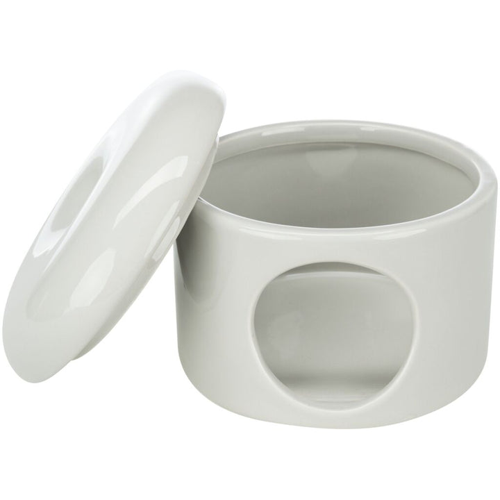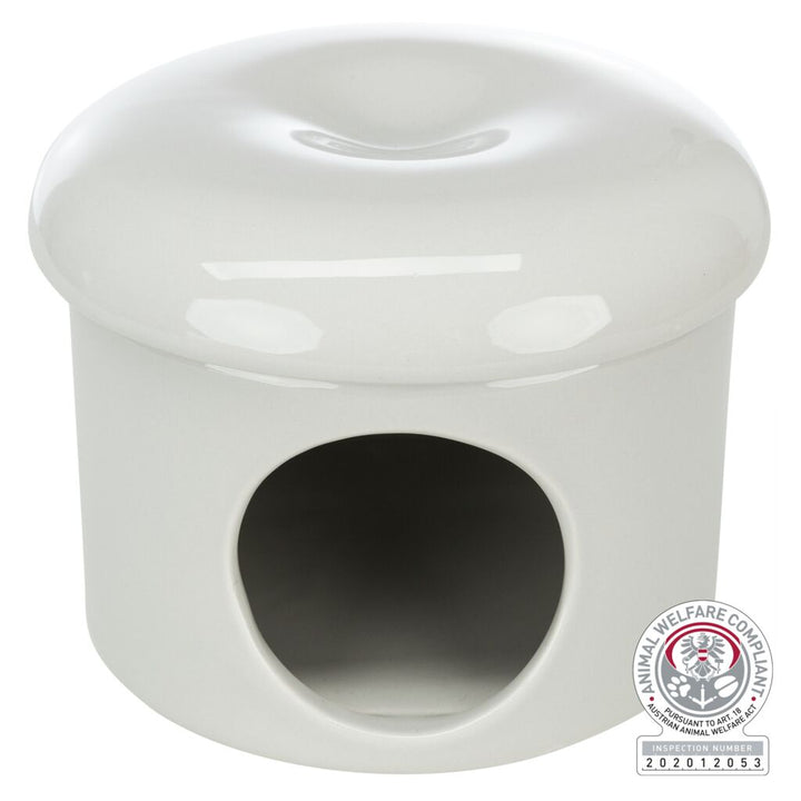 Das schöne Keramikhaus in der Farbe Taupe, ist ein kleiner Unterschupf und Rückzugsort für Hamster oder andere Kleintiere. Das Keramikhaus unterstützt die Regulierung der Körpertemperatur an warmen Tagen. Die Sommer können manchmal sehr heiß werden, daher ist es gut, kleinen Nagetieren einen Platz im Gehege zu geben, an dem sie sich abkühlen können. Ein großer Vorteil eines Keramikhauses ist die geschlossene Form. Die Tiere können sich dorthin zurückziehen, sich abkühlen und ein Gefühl der Sicherheit bewahren.