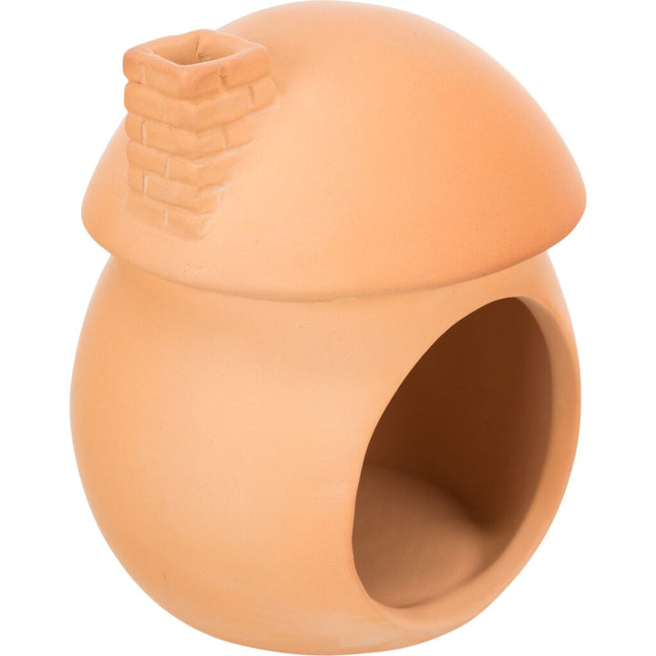 Als Terrakotta bezeichnet man unglasierte, keramische Tonware. Das Material ist natürlichen Ursprungs und schadstofffrei. Das Keramikhäuschen aus Terrakotta ist ein idealer Rückzugsort für kleine Nager an heißen Sommertagen, aber auch ansonsten schön dekorativ im Gehege aufzustellen.