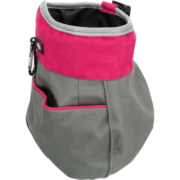 Diese coole Snack-Tasche mit Schnapp-Ring und reflektierenden Elementen ist ein Must-Have für jeden hundeliebenden Hund zum Aufbewahren seiner Häppchen! Der stabile Ringeinsatz macht es einfach und sicher, die Snacks zu holen. Der Verschluss hält zudem Regen fern, und ein Befestigungsclip sowie ein Karabiner ermöglichen es, eine Pfeife oder einen Clicker leicht anzubringen. Und die Aussentasche ist für jeden Extra-Snack bereit! Wuffff!