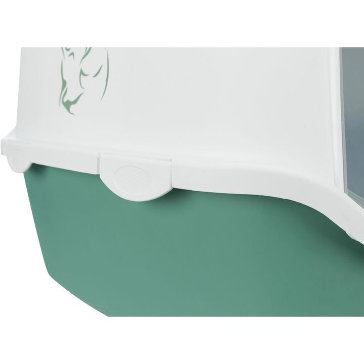Trixie Katzentoilette Vico bedruckt, mit Haube! Mit dem einzigartigen Motiv-Druck macht das Katzenklo jeden Tag zum Highlight. Einfache Clicke-Verschlüsse lassen sich schnell anbringen und die Kunststoff-Basis der Toilette ist in grün-weiss gehalten. 40x40x56 cm macht es zum perfekten Alltagspalast für Ihre Katze. Spülen Sie sich die Probleme vom Hals - mit Trixie Vico!