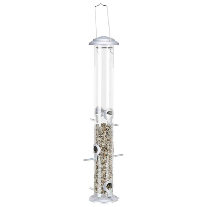 Füttere Deine vogeligen Freunde stilvoll mit der Futtersäule aus Kunststoff und Metall! Mit einem Fassungsvermögen von 1.300 ml hast Du genügend Futter zur Verfügung – und dank des abnehmbaren Deckels und der einfachen Reinigung der einzelnen Teile nimmt die Pflege kaum Zeit in Anspruch! Egal ob im Garten, im Park oder auf der Terrasse: Dank der superschicken silbernen Farbe und der Aufhängevorrichtung ist diese Futtersäule ein absoluter Hingucker!