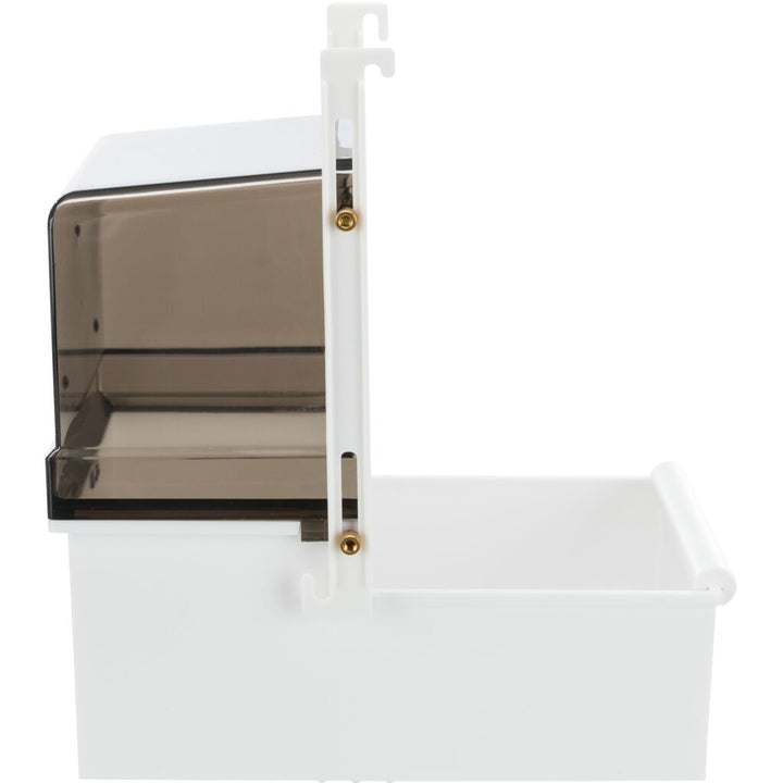 In der freien Natur reinigen sie so ihr Gefieder und befreien sich von Parasiten. Dieses Badehaus aus Kunststoff wird durch die verstellbaren Haken einfach an die Käfigtür gehängt. Es kann mit Wasser oder mit Sand gefüllt werden. Die geschlossenen Seiten bieten einen optimalen Spritzschutz.