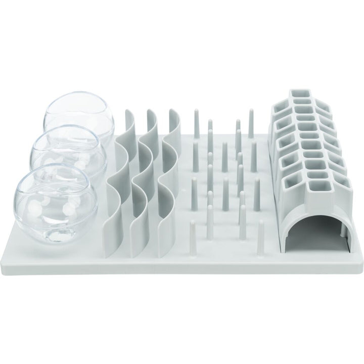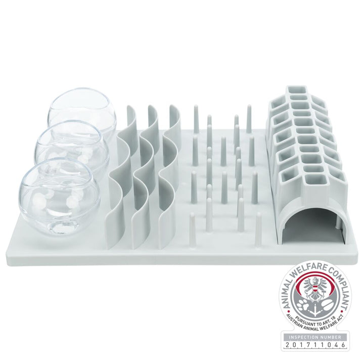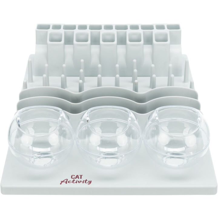 Das Brettspiel von TRIXIE besteht aus Kunststoff und ist auch für große Katzen geeignet. Das Strategiespiel besteht aus einem abwechslungsreichen Brett mit 5 unterschiedlichen Spielmodulen und besitzt rutschfeste Gummifüße. Es lässt sich für die tägliche Trockenfuttergabe verwenden und auch mit Spielzeugen und größeren Leckereien befüllen.