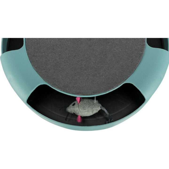Dieses Spielzeug regt immer wieder den Jagdinstinkt der Katze an, die versucht die Maus zu fangen. Diese scheint auch bei nur leichtem Anstossen im Kreis wegzulaufen.