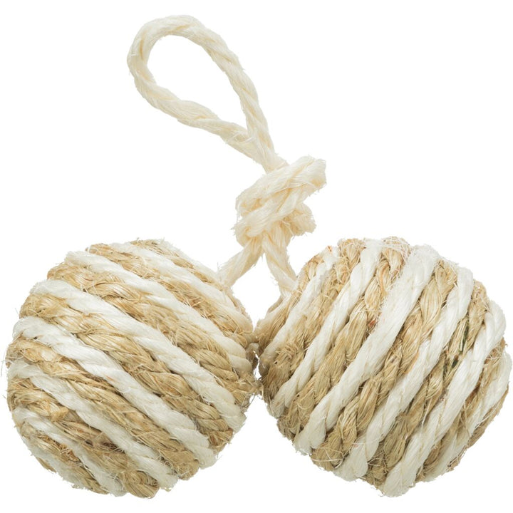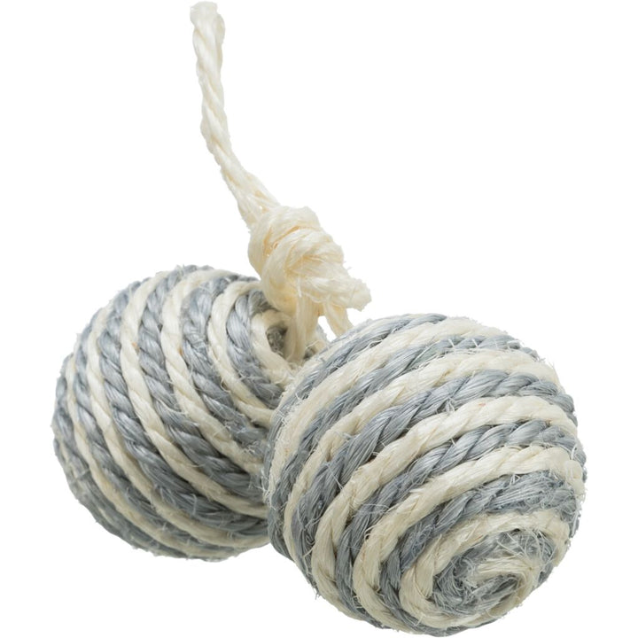 Doppelbälle an einem Seil - mit dieser fertig gebundenen Kombi hast du auf jeden Fall dein Kätzchen ganz schön in der Hand! Verleihe deiner Katze tolle Bewegungsmöglichkeiten dank dem ø 4,5 cm Sisal und der Schelle, mit der alles an Ort und Stelle bleibt. Dieser Kratzbaumhauptattraktion standhält jede Herausforderung!