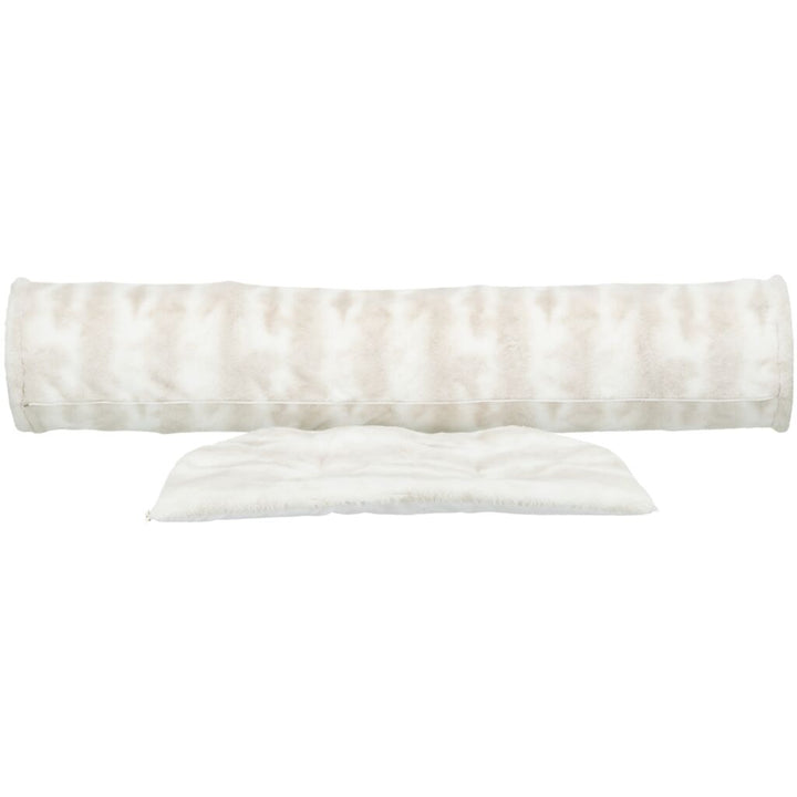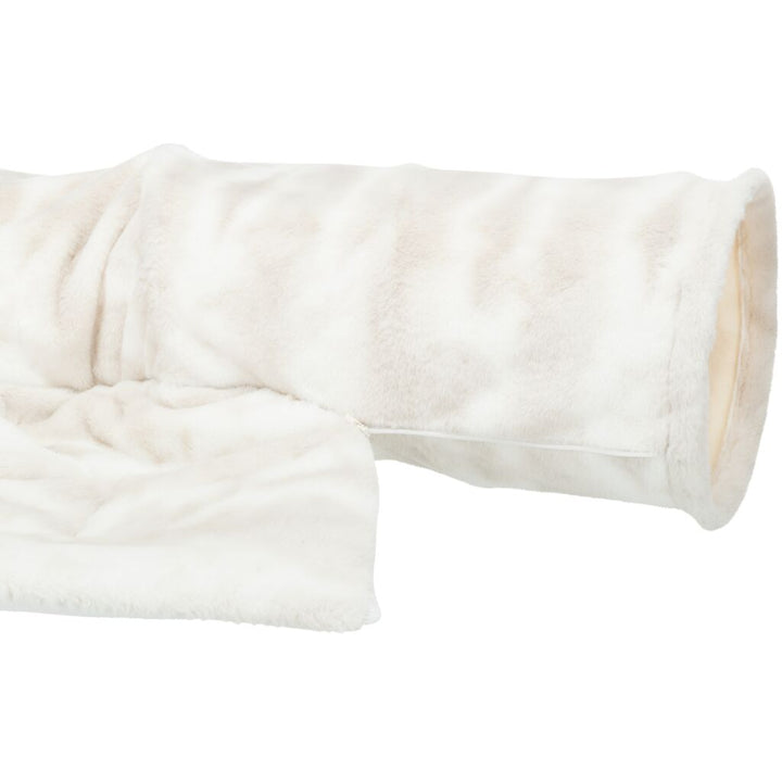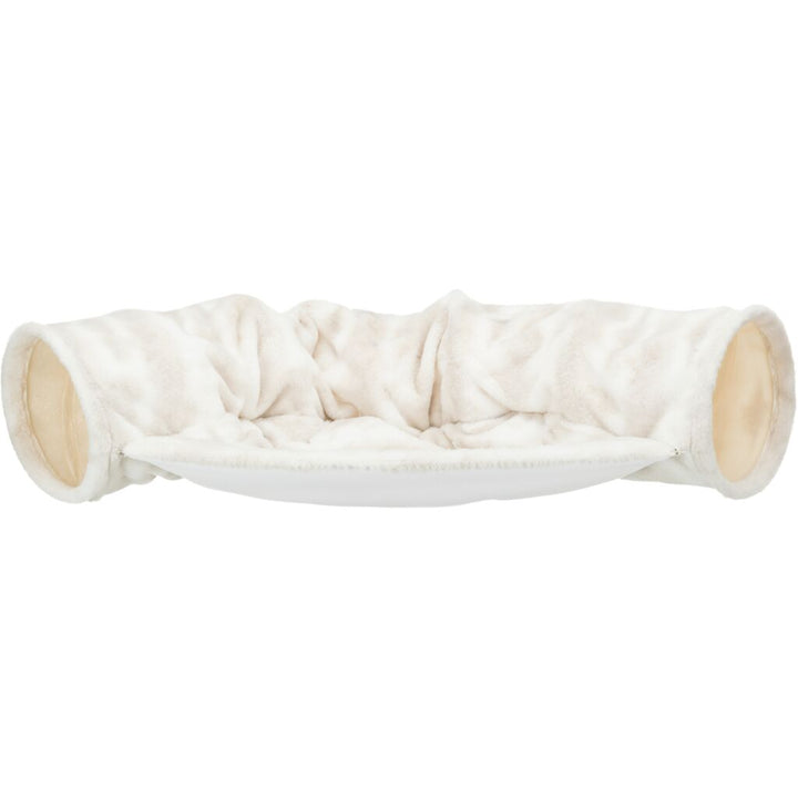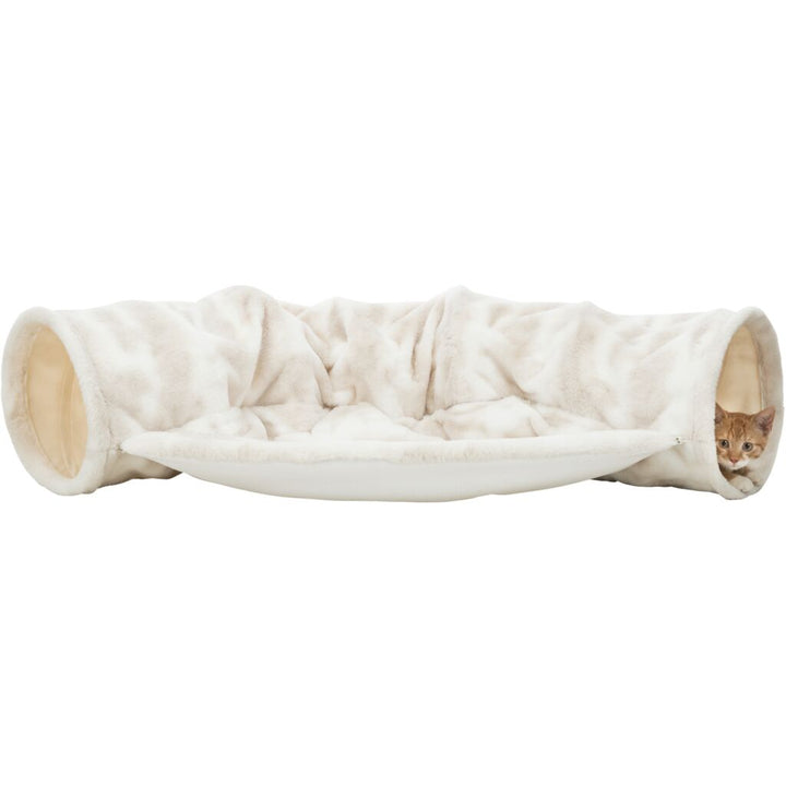 AusSpielen & Relaxen? Mit dem Spieltunnel Nelli macht's mehr Spass! Der Plüschtunnel (Polyester) und die abnehmbare Liegefläche (inklusive rutschfestem Gummiboden) sorgen dafür, dass Deine Katze alles hat, um sich auszutoben und chillen. In weiss-taupe, damit sieht die Nelli auch noch stylisch aus. Handwäsche ist ein Muss für den Liegekomfort :-)