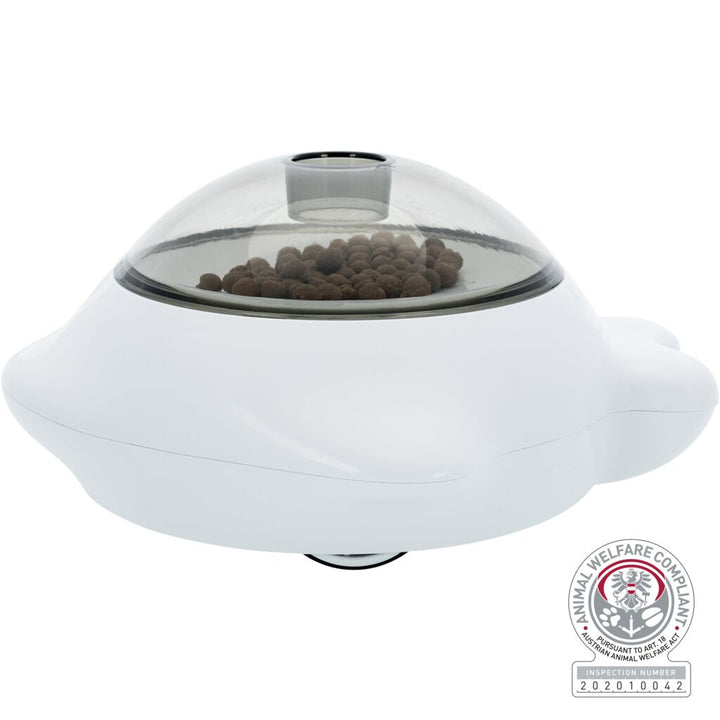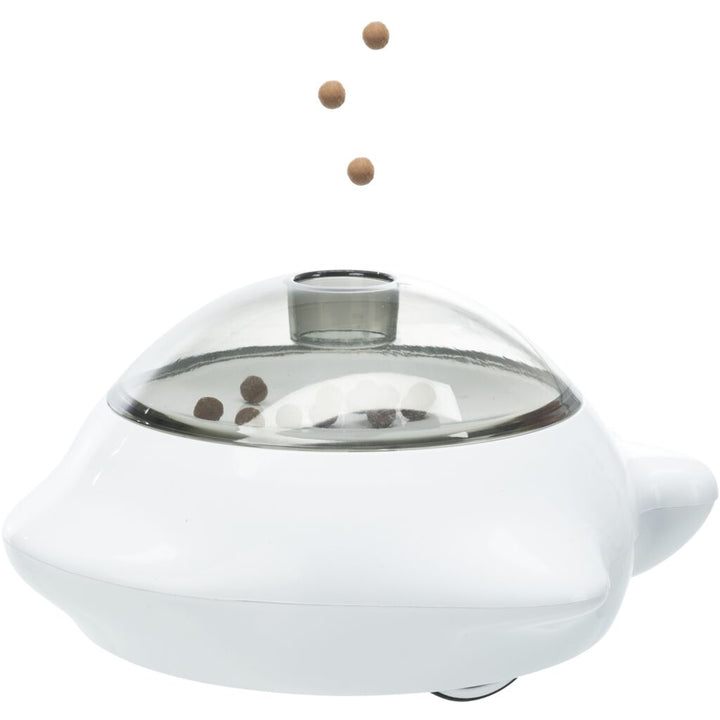 - durch Vor- oder Zurückschieben werden Leckerlis mechanisch ausgeworfen (kein Batteriebetrieb)