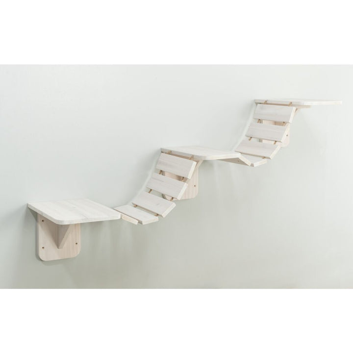Die Kletterleiter für Katzen aus Holz und Sisal von TRIXIE kann abwechslungsreich mit anderen Elementen zu Kletterwänden und -pfaden kombiniert werden. Mit drei Plattformen und zwei beweglichen Brückenelementen. Diese Kletterleiter zur Wandmontage erweitert den Lebensraum der Katze um höher gelegene Bereiche.