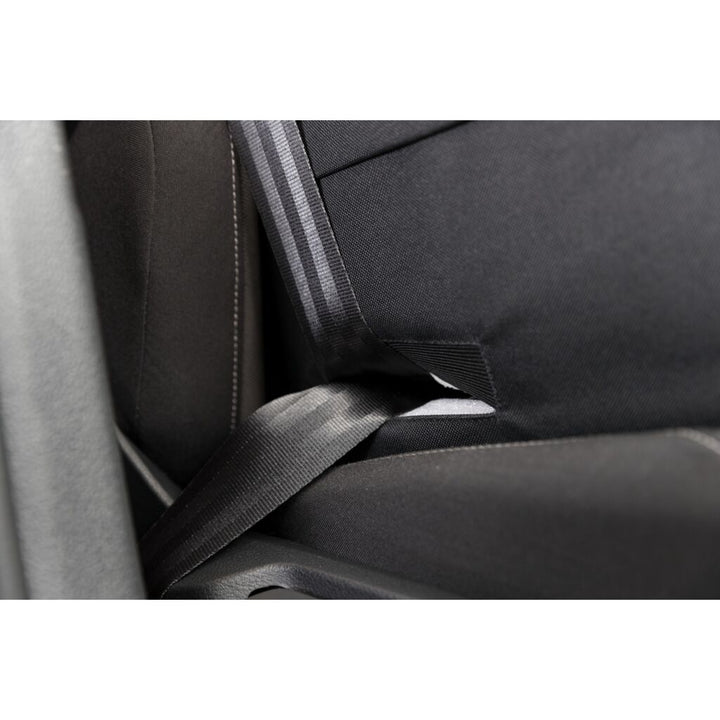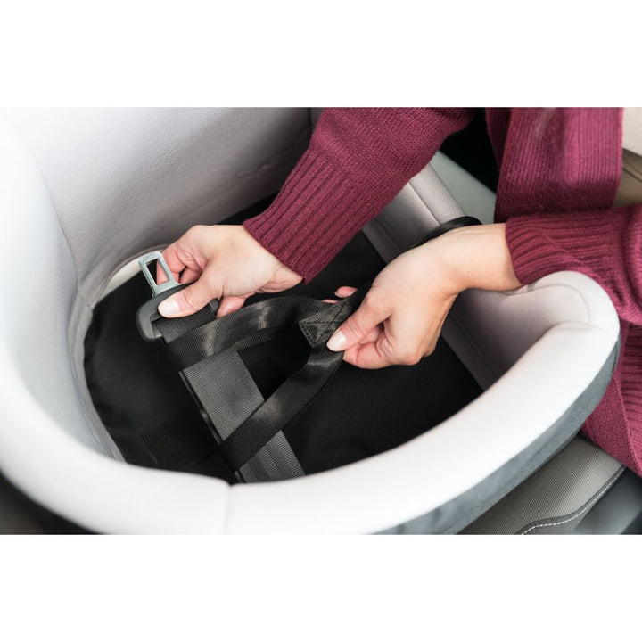 - Fixierung von Sitz und Befestigungsgurt mittels des KFZ-Anschnallgurts
