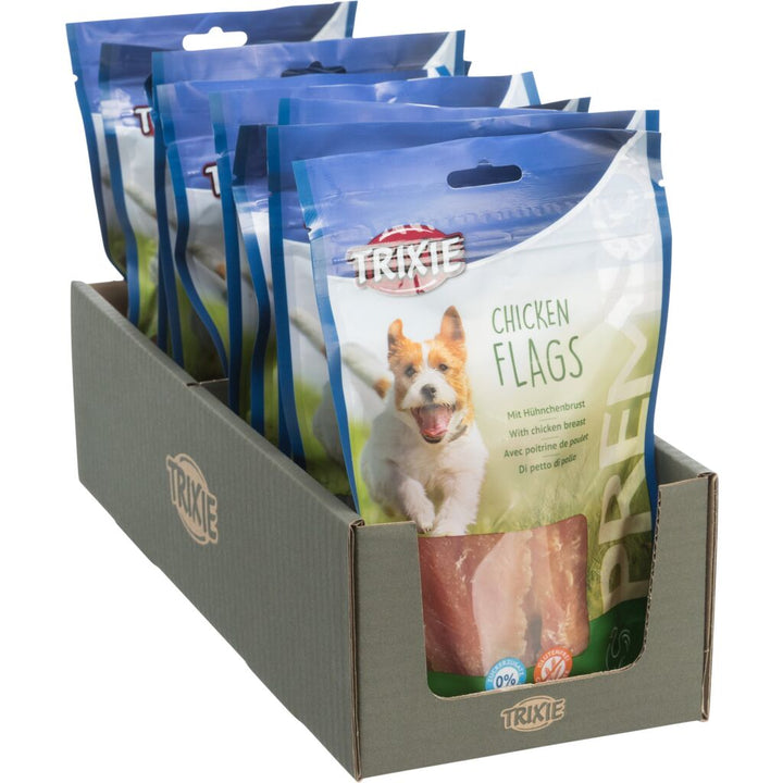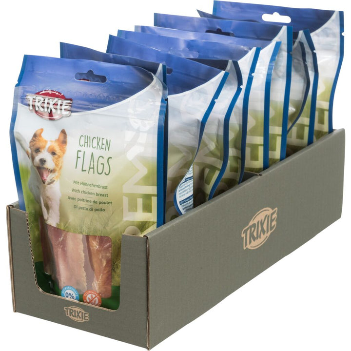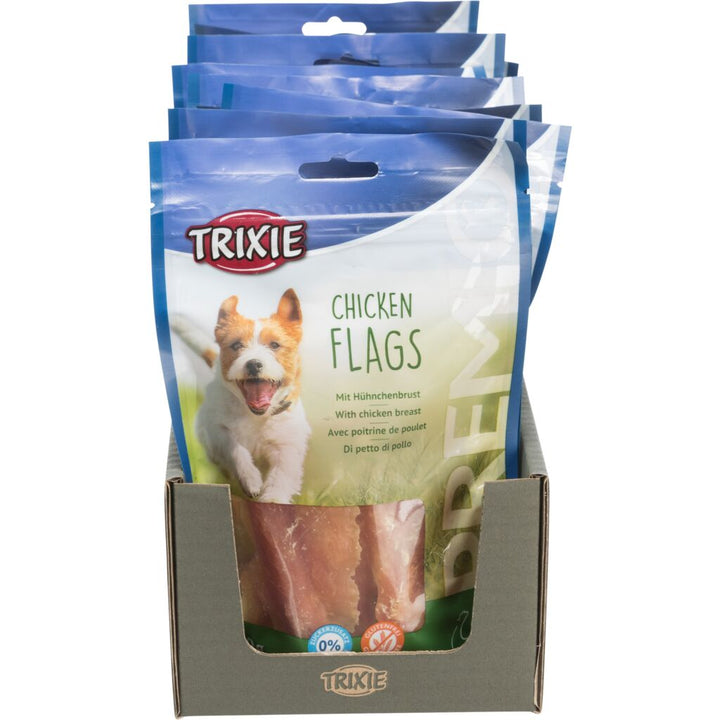 Gib deinem Hund die Flagge aus Rinderhaut und Hühnerbrust! Mit 65% Fleischgehalt sorgt PREMIO Chicken Flag für einen geschmacklichen Takedown für deinen Hunde-Snack. Genug knurren und quietschen für einen Happy End!