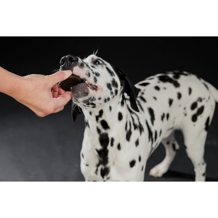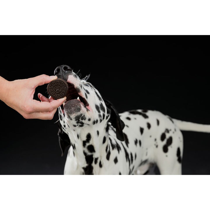Hundehappen lecker und formvollendet - probier die 6x schwarz-weissen Kekse! Plus gib Hundeohren ein knuspriges Upgrade mit dem Huhn-Happen. Yummy! 🐶🍪