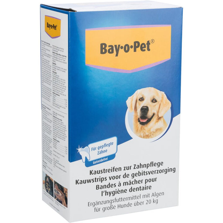 Erhalte deinem grossen Hund die Pflege, die er verdient! Unsere Zahnpflege Kaustreifen sind speziell für grosse Hunde entwickelt. Mit natürlichen Algen angereichert, stärken sie nicht nur die Kaumuskulatur und das Gebiss, sondern befreien die Zähne auch von Zahnbelägen, während sie sanft Zähne und Zahnfleisch reinigen! Dank ihnen wird dein vierbeiniger Freund strahlen, wie nie zuvor!