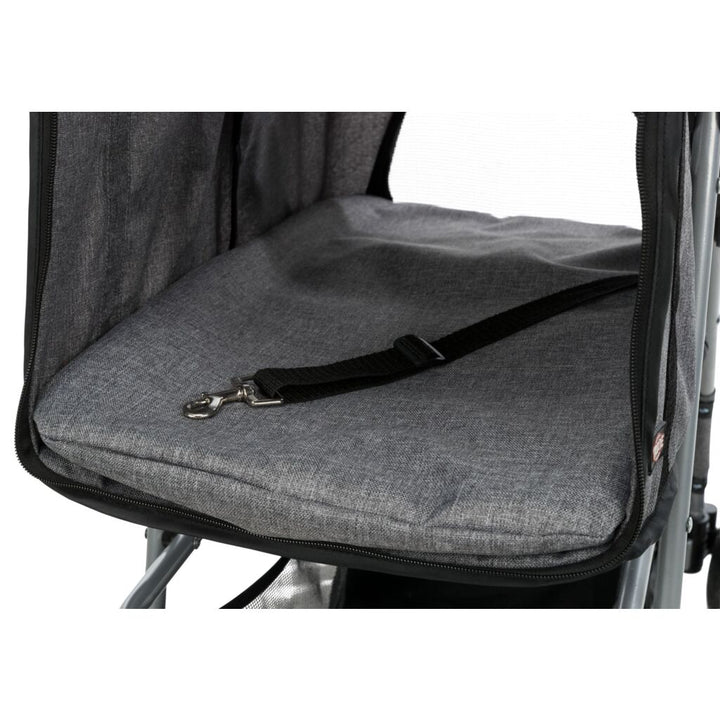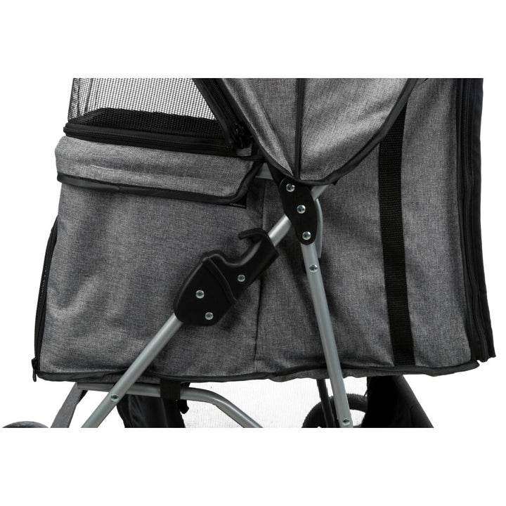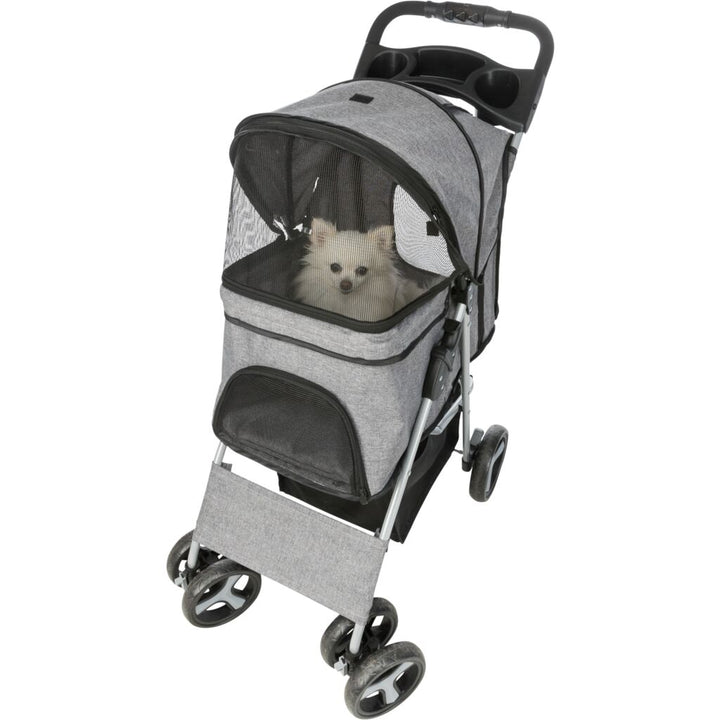 Für die stressfreien Ausflüge mit deinem tierischen Freund! Der Buggy 47 × 100 × 80 cm, 4,9 kg, grau bietet eine einzigartige Kombination von 4 Rädern für mehr Standfestigkeit und Schnell-Falt-Funktion. Damit ist er perfekt geeignet für alte, kranke, ängstliche oder sehr junge Hunde und Katzen! Mit seiner Einhand-Klapp-Bedienung am Griff, Fronträdern mit 360°-Gelenk, 2 Feststellbremsen und grosse Hecktür für den Ein- und Ausstieg - verspricht jedes Abenteuer ein absoluter Kinderspiel.