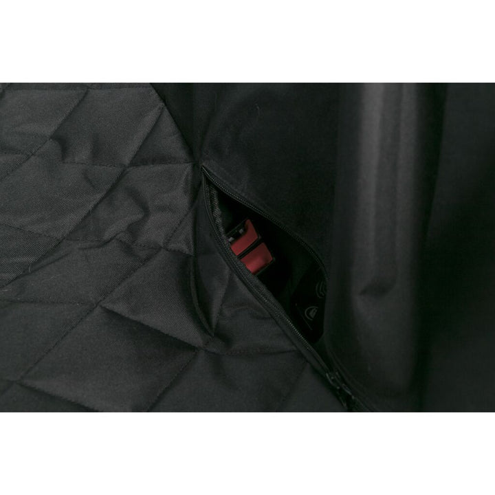 - Seitenteile können zum Ein- und Aussteigen durch zwei Reissverschlüsse heruntergeklappt werden und schützen so Polster und Verkleidungen