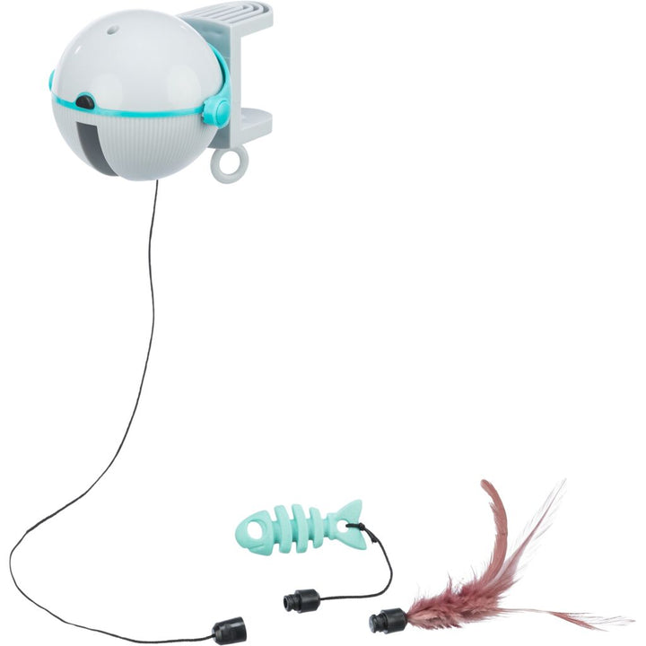 Der ultimative Fang-Spass für deine Katze. Unser automatisches Katzenspielzeug "Catch It" kann problemlos an unterschiedlichen Flächen bis zu einer Dicke von 4 cm angebracht werden. Durch eine batteriebetriebene Automatik fährt das an einer Schnur befestigte Spielzeug unregelmässig auf und ab, wodurch der Spiel- und Fangtrieb deines Stubentigers angeregt wird. Zur Abwechslung kannst du zwischen einem Fisch- oder Federspielzeug wählen - wie es deiner Katze am besten gefällt. Nach 15 Minuten schaltet sich das Spielzeug automatisch ab.