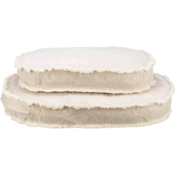 Schmuse deinem staubwedelnden Freund mit dem Kuscheligen Kissen Boho! Aus Webstoff und Plüsch bestehend, ist er mit einem Bezug aus Baumwolle und einer Polyestervlies-Füllung dein perfekter Begleiter. Und mit dem abnehmbaren Bezug bleibt dein Plüschtier sauber und frisch!