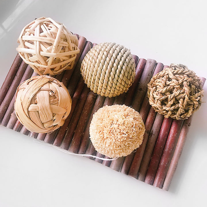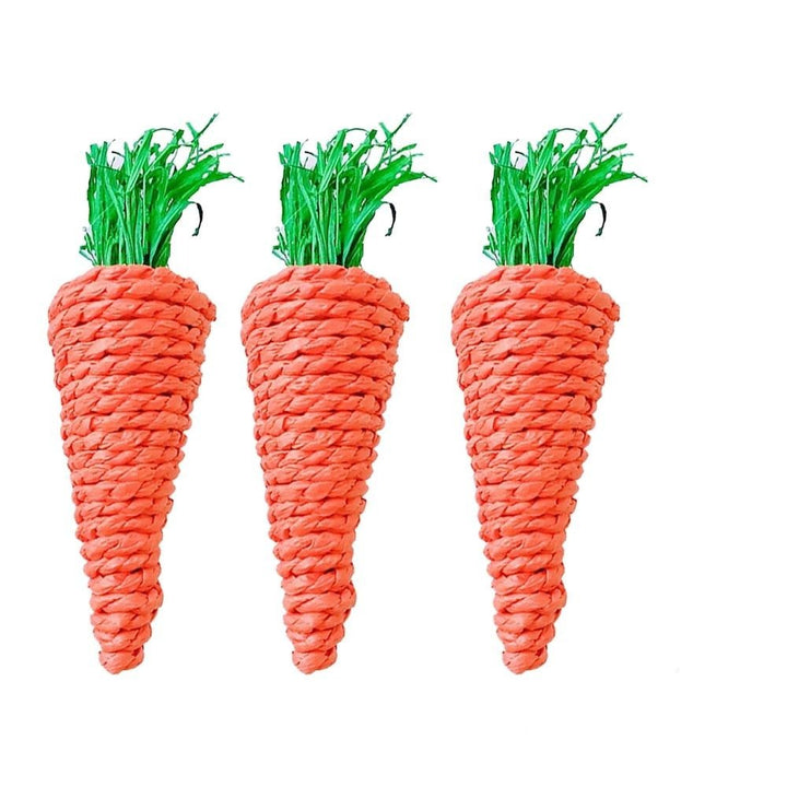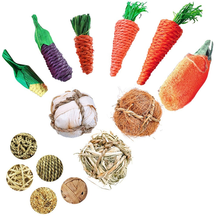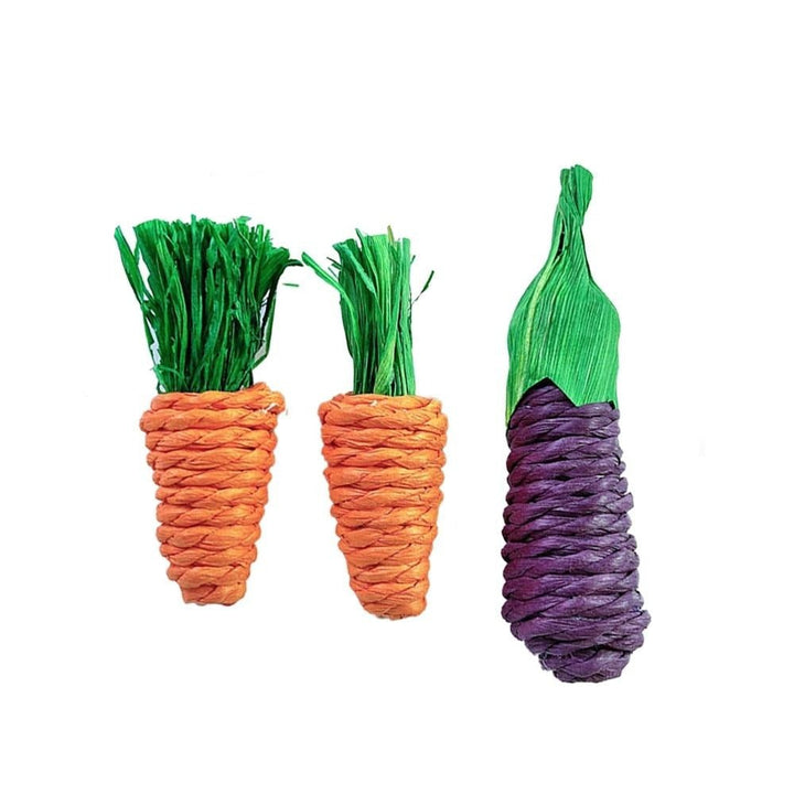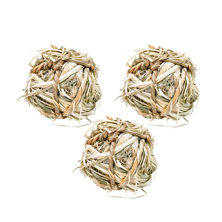 Das Knabber-Trio ist frei von Leim, Metall, Kunststoffe und andere Substanzen, die schädlich für dein Tier sein könnten. Es handelt sich um komplett fressbare Spielbälle, die zum ausgiebigen Toben und Knabbern einladen. Das Geflecht der Produkte hält wilden Spielsessions stand und bietet daher langanhaltende Unterhaltung für Kleintiere. Darüber hinaus unterstützt das Nagen an den Bällen und "Möhren" den Zahnabrieb. Nestbauende Tiere können das Material zudem verwenden, um für ihren Nachwuchs ein gemütliches Nest einzurichten. Ob Hamster, Maus, Ratte oder Meerschweinchen – das 3-teilige Spiel- und Knabberset kommt bei vielen Kleintieren gut an und bringt Unterhaltung zum Anbeissen in den Nagerkäfig.