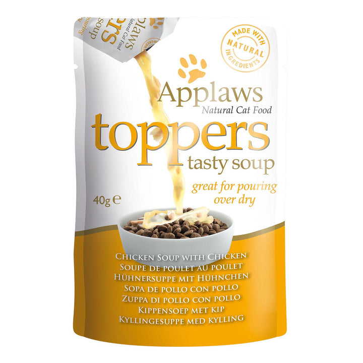 Die Applaws Topper Soup (3x40g) ist eine köstliche Suppe für Katzen. Das Menü ist ohne Geschmacksverstärker und aus natürlichen Zutaten ein kleiner Gaumenschmauss für Ihre Katze. Dieses Zusatzfutter sorgt für eine ausgewogene Ernährung zusammen mit andereen Vollnahrungen von Applaws (Trocken- oder Nassfutter). Gönnen Sie Ihrem Liebling somit eine köstliche Malzeit und sorgen Sie dank der Variationen von Applaws für Abwechslung auf dem Speiseplan.