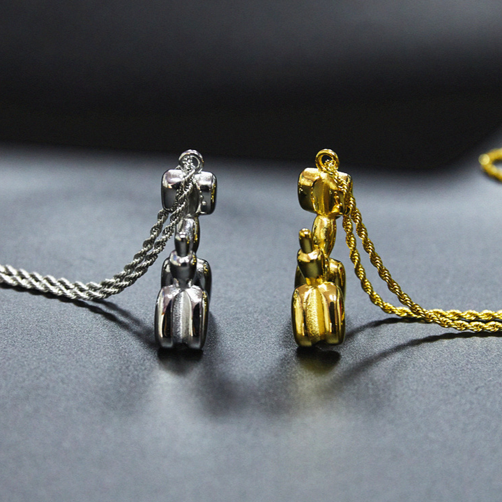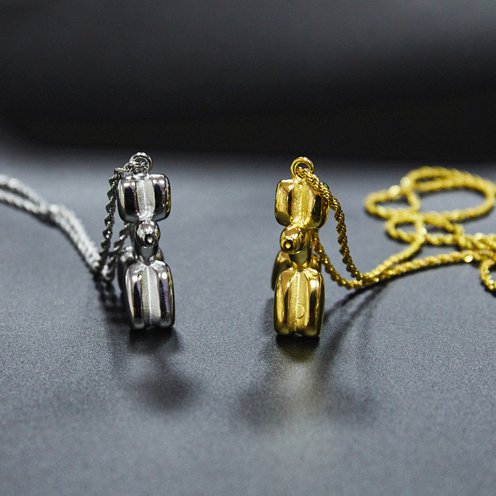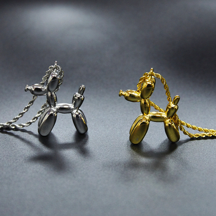 Und genau so eine Ballon Hundefigur gibt es jetzt als coolen Schmuckanhänger mit passender Halskette.
