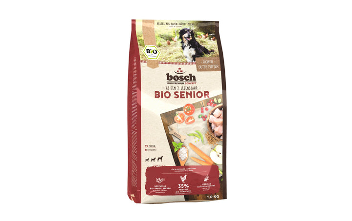 Das Bosch Bio Senior ist ein Alleinfutter für ältere Hunde ab dem 7. Lebensjahr mit reduziertem Eiweiss-, Fett- und Mineralstoffgehalt. Es enthält ausschliesslich landwirtschaftliche Rohstoffe, die nachweislich zu 100% aus biologischem Anbau stammen, vertraglich überwacht und geprüft vom Prüfverein Verarbeitung ökologische Landbauprodukte e.V. in Karlsruhe. 35% Bio-Hühnchen machen dieses Seniorfutter besonders schmackhaft und hochverdaulich. Preiselbeeren sind reich an Ballaststoffen, welche zusammen mit den Ballaststoffen unseres speziellen Bio-Kräutermix die Darmtätigkeit Deines Seniors unterstützen. Ausserdem sind sie reich an Vitamin E, welches antioxidativ gegen freie Radikale wirkt und damit die Zellfunktion unterstützt.