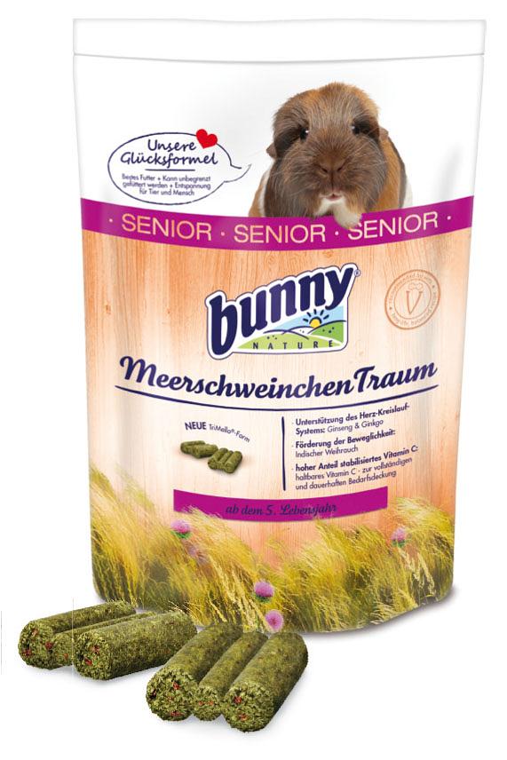 Fütterungsempfehlung: Den Napf mit Meerschweinchentraum SENIOR füllen und leer fressen lassen, erst dann wieder auffüllen. Täglich hochwertiges bunny Heu und frisches, handwarmes Wasser geben.