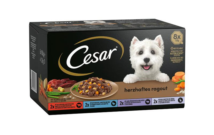 Seit über 30 Jahren widmet sich Cesar speziell den Bettenürfnissen kleiner Hunde. Das Unternehmen der Mars Gruppe bietet hochwertige Menüs mit ausgewählten Zutaten aus kontrollierter Herkunft. Die Nahrung enthält einen Fleischanteil von bis zu 60 Prozent und Nährstoffe, Vitamine und Mineralien, die Ihr kleiner Liebling benötigt. In den köstlichen Menüs finden sich weder Zucker noch künstliche Farb- oder Aromastoffe. Sie wurden besonders schonend zubereitet, damit der natürliche Nährwert und köstliche Geschmack der ausgewählten Zutaten erhalten bleibt. So sorgen die Menüs für leckere Abwechslung im Napf. Verwöhnen Sie Ihren Hund jeden Tag mit den vollwertig-ausgewogenen Mahlzeiten von Cesar. Denn Cesar weiss, was kleine Hunde brauchen und lieben.
