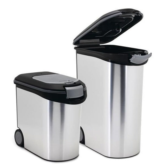 Diese hochwertigen Trockenfutterbehälter sind für Tierliebhaber gedacht, die keine Lust mehr auf unansehnliche Hundefuttertüten oder -säcke in ihren Vorratsräumen oder Abstellkammern haben. Mit den Produkten von Curver hat das Futter für die Vierbeiner nun seinen Platz in einem platzsparenden, dekorativen Behälter mit einer Metalloptik. Noch dazu sind die Futterbehälter praktisch, komfortabel und einfach im Gebrauch. Das Trockenfutter bleibt dank einer luftdichten Gummiabdichtung darin lange frisch, knusprig und schmackhaft. Zudem bleiben wertvolle Nährstoffe erhalten. Durch eine Öffnung im Deckel kann das Futter einfach in den Napf eingefüllt werden. Zusätzliche Details wie die integrierten Rollen sorgen für weiteren Komfort bei der Handhabung.