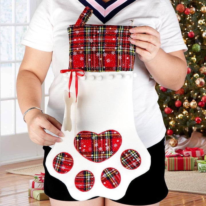 Dieser Dekohänger Weihnachtsocke wird gewiss jeden Tierliebhbaer begeistern. Denn im Gegensatz zu den klassischen Weihnachtssocken, sterben Mann am Kamin oder an der Tür hängt, hat sie eine Pfotenform, deren Ballen durch schöne Stoffmuster akzentuiert werden. Beschriftbare Namensschilder in Knochenform beugen Verwechslungen der eigenen Weihnachtssocke vor.