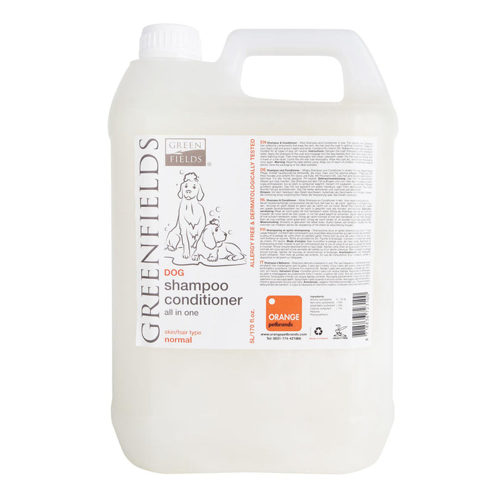 Greenfields Shampoo & Conditioner all in one 5l Diese klassische Formel von Greenfields bietet ein Shampoo und eine feuchtigkeitsspendende Cremespülung in einem einzigen Produkt. Das Shampoo wurde für verschiedene Felltypen entwickelt...