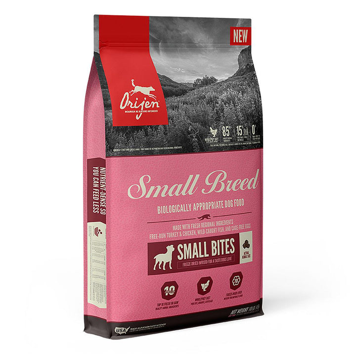 Welpen grosser Rassen benötigen viele Proteine um ihre Muskulatur gesund aufbauen zu können, aber auch wenig Kalorien, damit sie schlank und gross werden. Orijen Small Breed bietet eine Ernährung mit viel frischem Fleisch von unterschiedlichen Beutetieren, um ein gesundes Wachstum Ihres Welpen zu fördern.