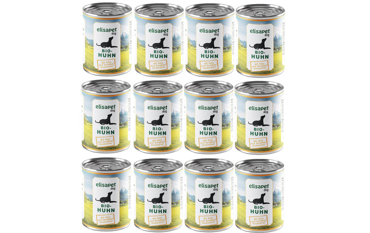 Erfrisch deinem Vierbeiner den Gaumen mit elisapet Nassfutter! Frei von Konservierungsstoffen, Aromastoffen, Gluten und Lactose, aber voll mit leckerem Huhn aus kontrolliert biologischem Anbau, gibt's hier nur den Besten für deinen Furz-Knuddel! Denn klug ist doch: Vom Bio-Bauernhof direkt in den Napf!