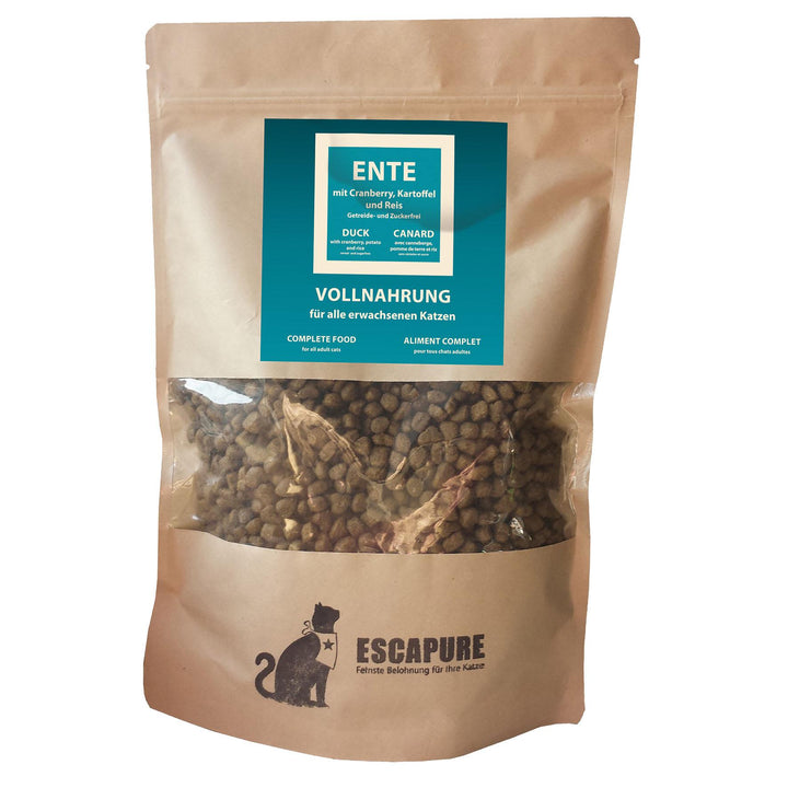 Durch die schonende Verarbeitung und die Auswahl an hochwertigsten Bestandteilen ist Escapure Trockenvollnahrung eine biologisch angemessene, schmackhafte Ernährung für Ihre Katze - bekömmlich und lecker.