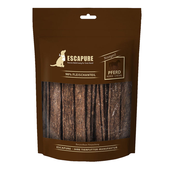 Escapure Stangerl Pferd, 150 g Verabschiede dich von langweiligen Snacks für Hunde und sorge stattdessen für ESCAPURE Pferde Stangerl! Schneid sie in kleine Stücke, damit dein vierbeiniger Freund sich richtig austoben...