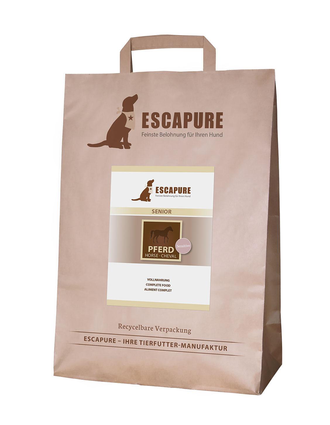 Escapure Senior Premium PferdEscapure Senior Premium Pferd ist eine speziell auf Senioren abgestimmte Rezeptur, welche gemeinsam mit den vielen frischen Zutaten Ihr Liebling auch im hohen Alter.Frisches Fleisch und die Zugabe...