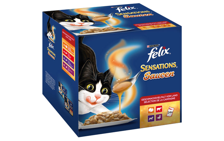 Jedes Katzenfutter von FELIX Sensations Saucen, enthält zarte Stückchen, angerichtet in leckeren und schmackhaften Saucen und sorgt für eine saftige Überraschung.