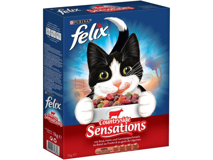 Jede kunterbunte Mahlzeit von FELIX Meaty Sensations ist randvoll mit köstlich duftenden und knusprig leckeren Kroketten in vielen verschiedenen Formen und mit einem sensationellen Geschmack mit Rind und Huhn. Die 100%...