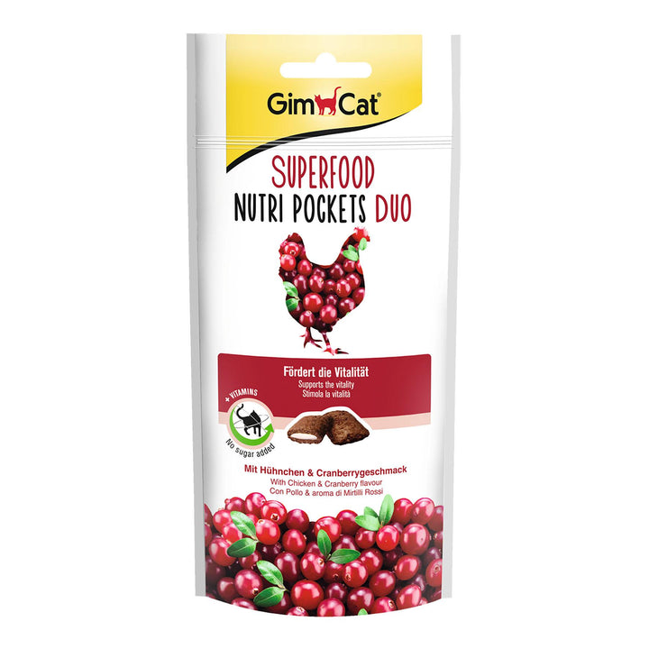 Die GimCat Nutri Pockets sind knusprige Kissen mit einem schmackhaften, weichen Kern und weiteren Inhaltsstoffen, die Ihren Stubentiger in seiner Vitalität unterstützen können. Ihre Katze wird die herzhaften Snacks lieben, und bei gerade mal 2 kcal pro Stück darf auch ein bisschen mehr genascht werden!