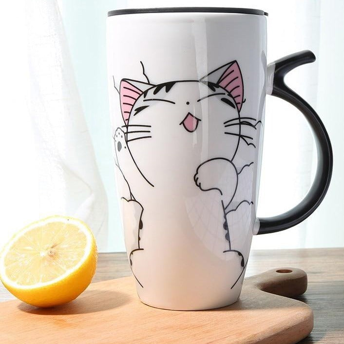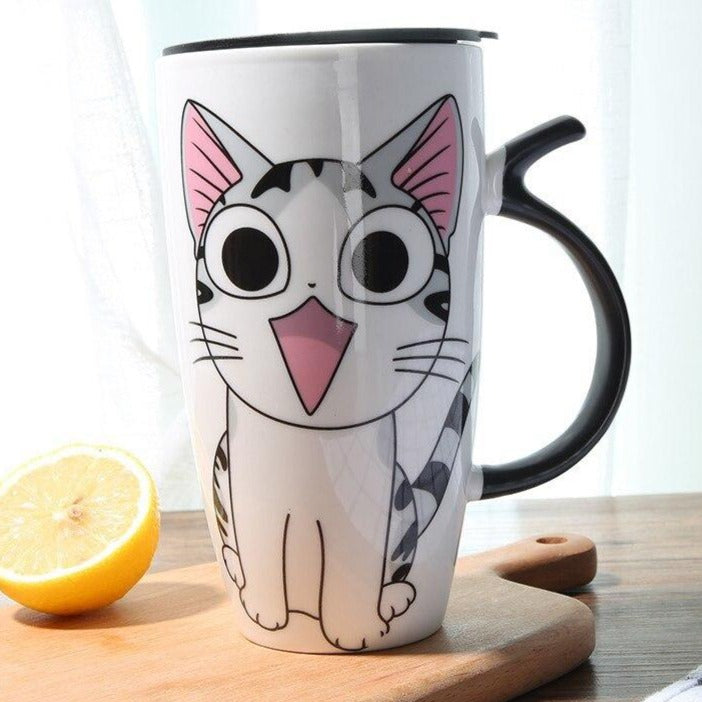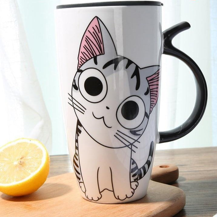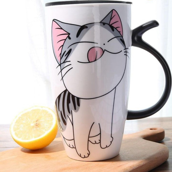 Grande tazza di ceramica con stampa di gatto