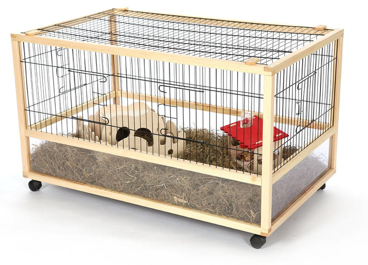 Der Hoppelgarten von Skyline ist eine Neuentwicklung für Meerschweinchen und Kaninchen. Ein bequemer Zugang zum Hoppelgarten ist durch das Dach, welches entfernt werden kann, gewährleistet. Der fein geschliffene Holzrahmen ist auf Rädern montiert, somit kann der Hoppelgarten von Skyline jederzeit und ohne Kraftaufwand herum geschoben werden.