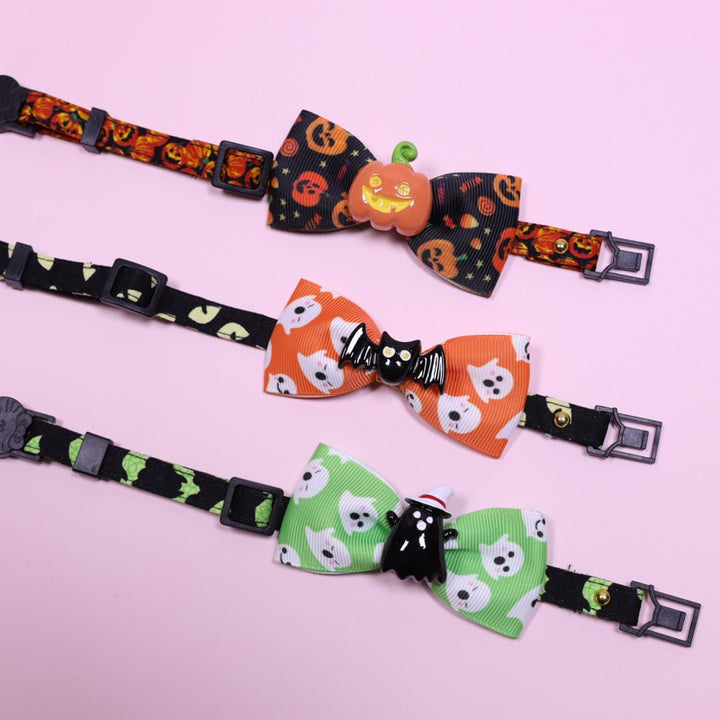 Denn neben dem bunten Nylonstoff des Halsbandes, findet man eine kleine Fliege mit verschiedenen Dekofiguren. Hier tümmeln sich entweder eine Fledermaus, ein Kürbis, ein Glubschauge, ein Geist oder ein Monster mit Glöckchen stilecht an dem Halsband.