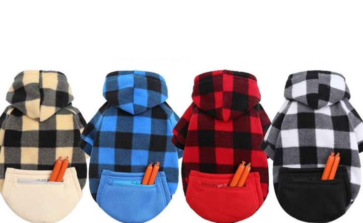Und richtig gemütlich und praktisch ist dieses Exemplar für Hunde auch noch. Aufgeraute Baumwolle hält den Hundekörper bei kühleren Aussentemperaturen warm, die Kapuze schützt vor Wind und leichtem Nieselregen und in der aufgenähten Tasche mit Reissverschluss lassen sich kleine Utensilien mitnehmen. Vielleicht ein kleines Belohnungsleckerli oder den Haustürschlüssel, damit Frauchen den nicht in der Hand halten muss....