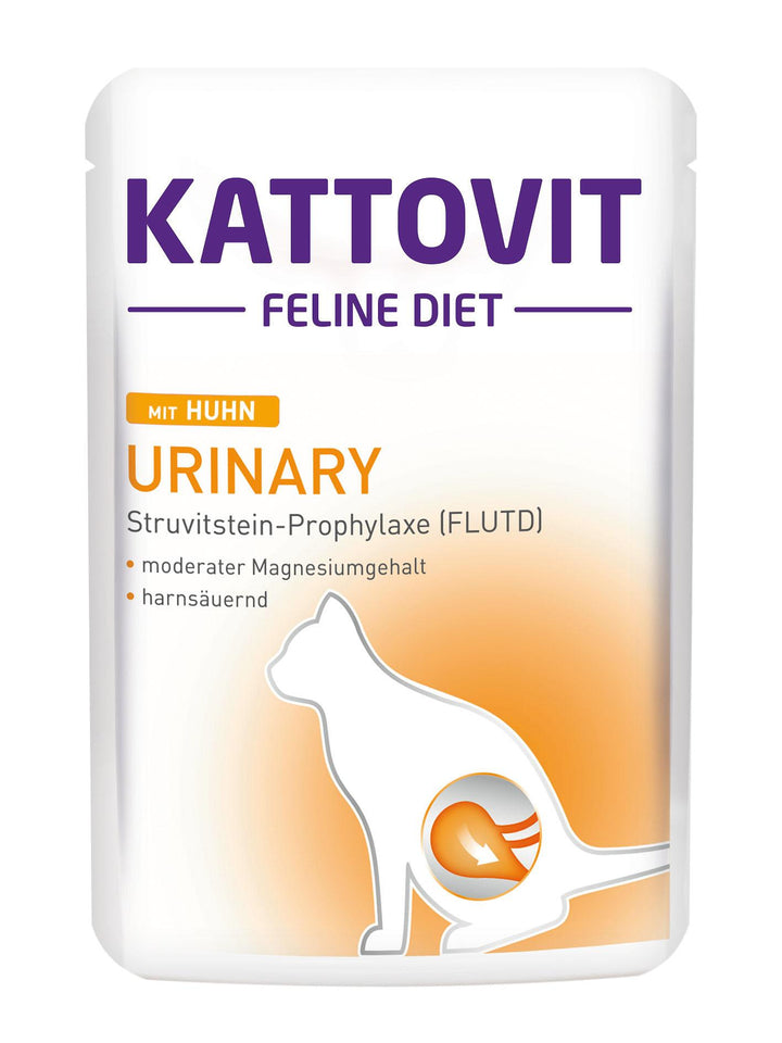 URINARY wurde nach neuesten wissenschaftlichen Erkenntnissen entwickelt. Zur Vorbeugung von Harnsteinen (Feline lower urinary tract disease – FLUTD) wurde die Zusammensetzung des Futters so entwickelt, dass der pH-Wert des Katzenurins mit 6,4 deutlich im niedrigen Bereich liegt. Kattovit URINARY enthält harnansäuernde Stoffe (DL-Methionin und Ammoniumchlorid) und hat einen niedrigen Magnesiumgehalt. Zur weiteren Vorbeugung sind eine hohe Verdaulichkeit und eine hohe Energiedichte des Katzentrockenfutters wichtig.