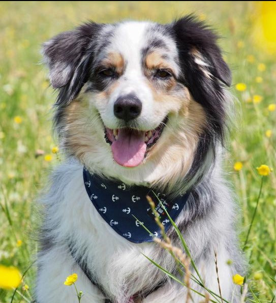 Style, Komfort und Top-Qualität auf den Punkt gebracht: KNAUDERS BEST Halstuch Anker Marine ist schnell dein Lieblingsbegleiter für deinen Vierbeiner! Mit Wende-Schmuckstücken aus 95% Baumwolle und 5% Lycra und einem lässig-maritimen Design gibt es im Handumdrehen zwei Tragevarianten. Das Halstuch ist schnell und einfach bei 40° waschbar! Ein echtes Must-have für jeden Hundefreund!