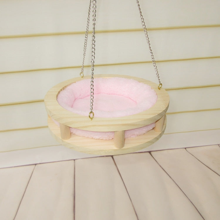 Die Holzschaukel gibt es in zwei Grössen und ist somit ideal für Hamster, Eichhörnchen, Chinchilla, Meerschweinchen, Ratten und andere Nager, die gerne schaukeln und kuscheln.