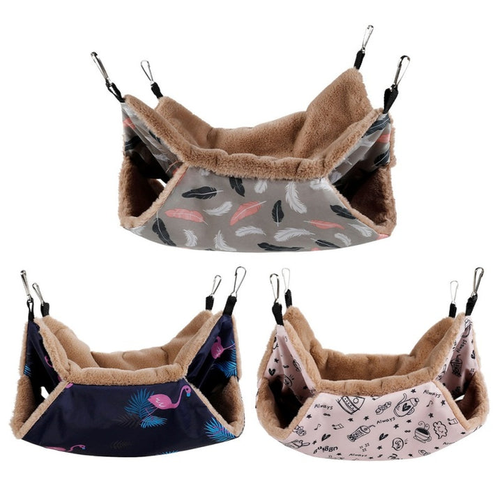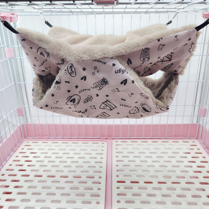 Nicht eine, sondern zwei Etagen hat diese wunderbare Hängematte für Nager! In der unteren "Etage" kann sich dein Kleiner zurückziehen und sein ungestörtes Schläfchen halten. Auf der oberen Liegefläche lässt sich der Ausblick geniessen und den Tagträumen nachhängen. So ein Leben als Hamster kann schon echt anstrengend sein! Vor allem wenn man so eine tolle und kuschelwarme Hängematte in seinem Käfig hängen hat!