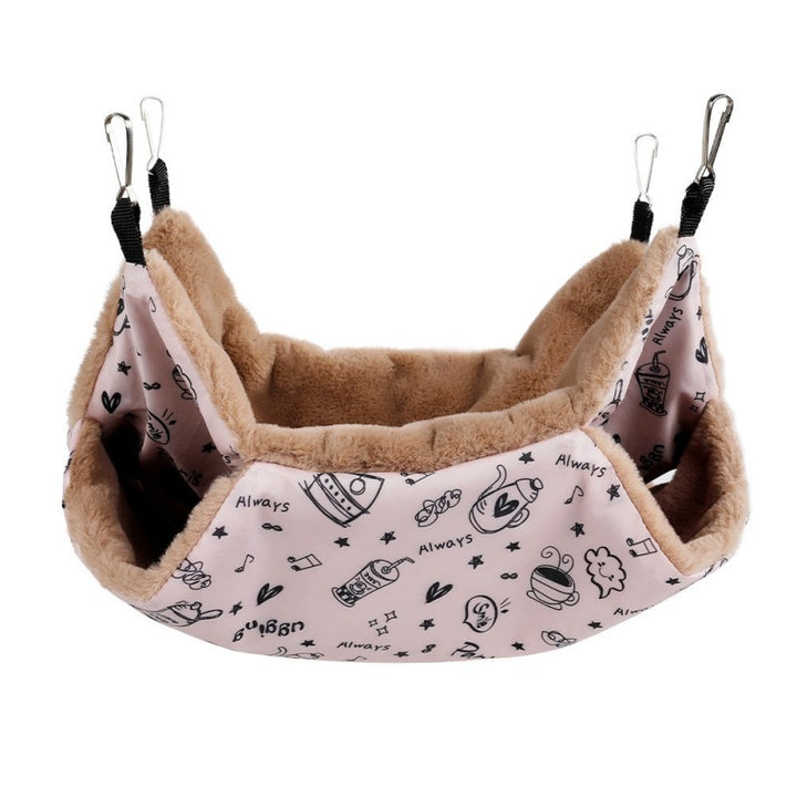Die Doppel-Hängematte kannst du deinem Kleintier ganz einfach auf die gewünschte Höhe hängen, denn an den vier Schlaufen befinden sich schon vier Haken.