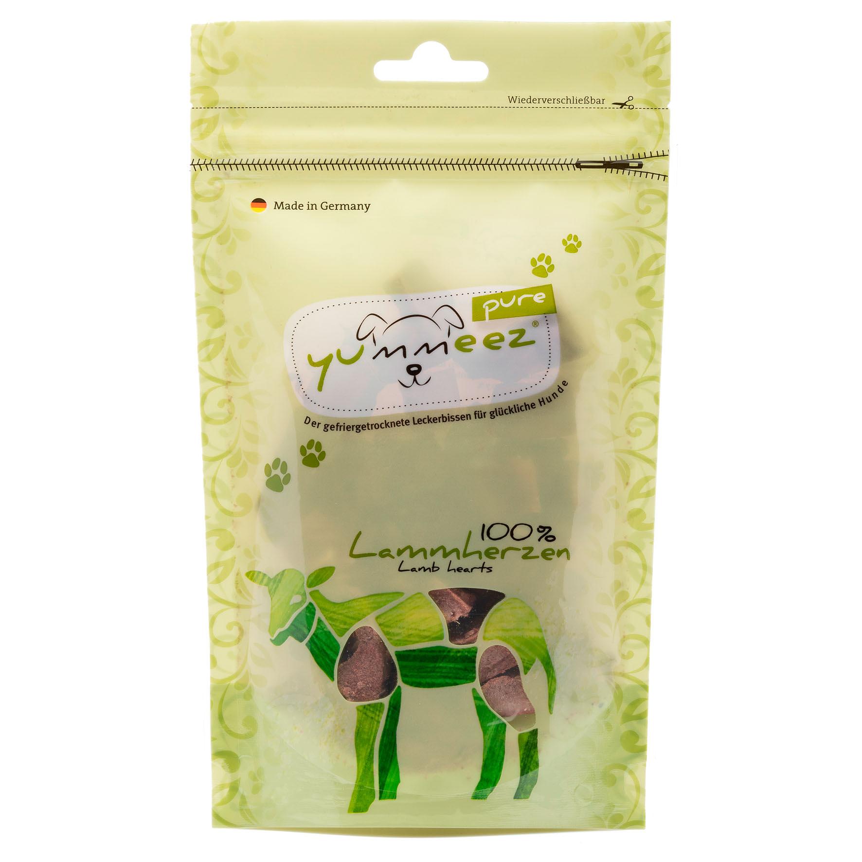 Die Yummeez pure sind gefriergetrocknete Happen für Hunde, die naturrein und durch das spezielle Herstellungsverfahren besonders schmackhaft sind, so dass Ihr Hund sie besonders lieben wird. Auch die Yummeez pure sind Monoproteinsnacks, die zu 100% aus purem Fleisch bestehen und somit auch für ernährungssensible Hunde und Hunde mit Futtermittelallergien geeignet sind. Ausserdem wird nur Herz für die Herstellung dieser Leckerlies verwendet. Das Herz ist ein besonders starker Muskel und enthält beinahe kein Fett, wodurch das Fleisch als besonders schmackhaft und gesund gilt.
