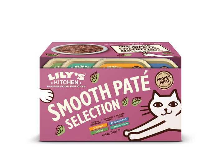 Das Smooth Paté-Rezepte ist der Nachfolger von Lily's Kitchen Favorit. Das Futter hat eine weiche, geschmeidige Textur, die es besonders lecker macht und ist vollgepackt mit echtem Fleisch, für Katzen einfach unwiderstehlich. Diese getreidefreien Rezepte ohne Zuckerzusatz (ungewöhnlich für Katzenfutter) sind ernährungsphysiologisch ausgewogen – sie sind also nicht nur lecker, sondern auch vollwertig.