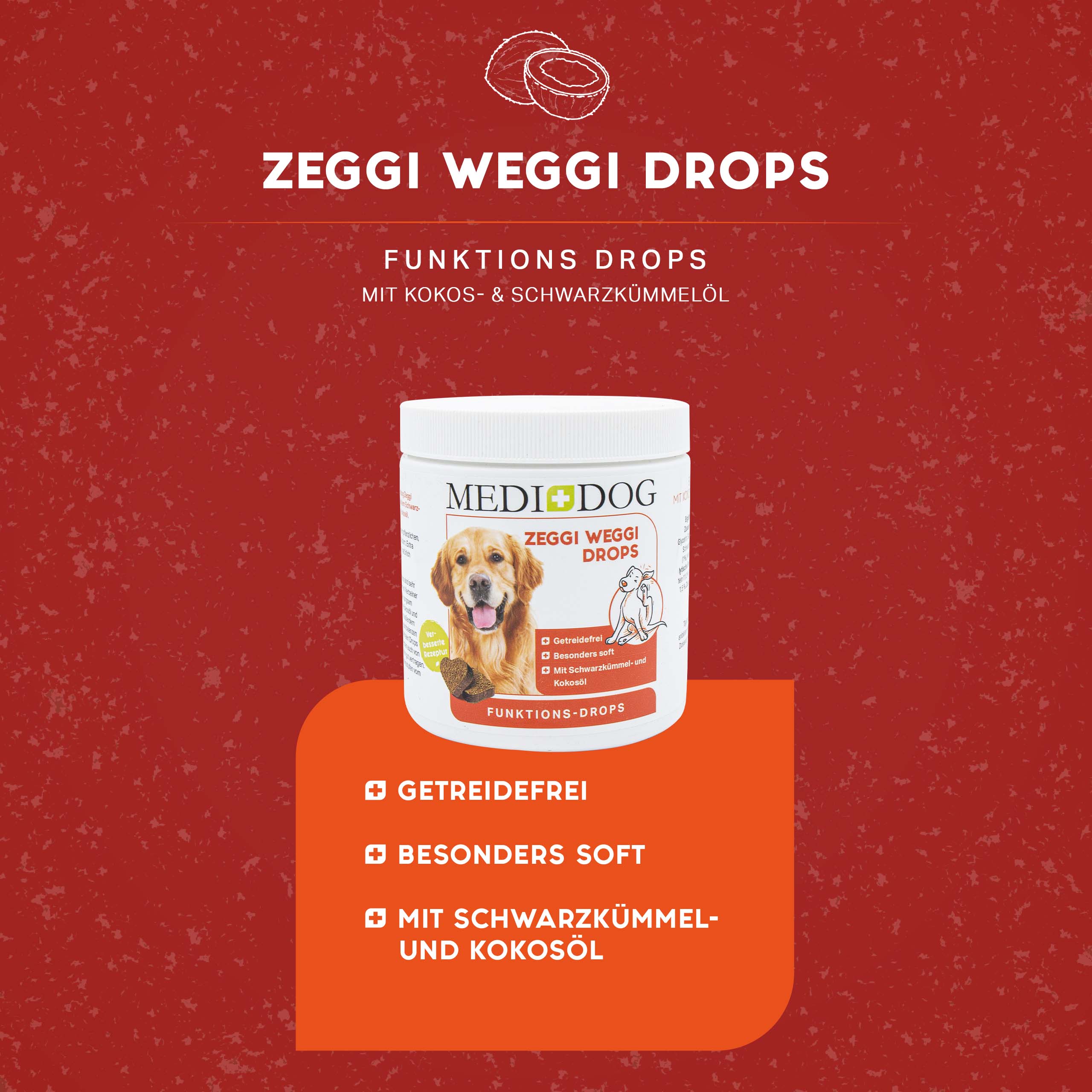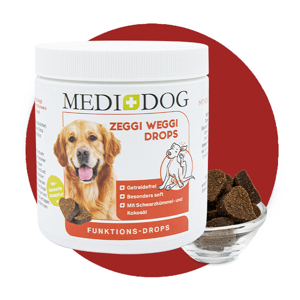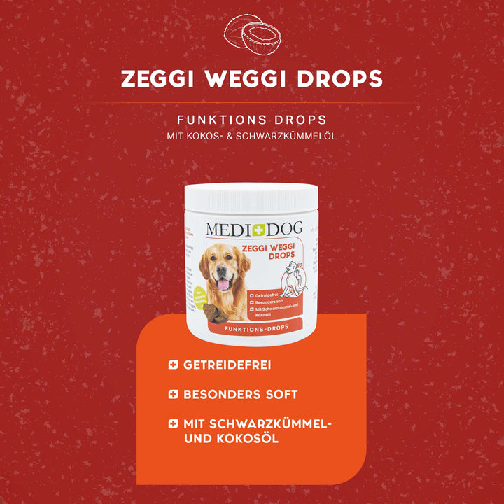 Snack puramente vegetale e funzionale Il gustoso snack Medidog Zeggi Weggi è in grado di supportare il vostro cane grazie al prezioso olio di cumino nero e all'olio di cocco vergine....