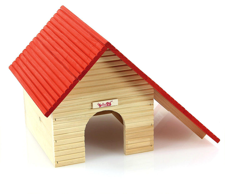 Die Nagerfarm in beige/rot ist ein tolles Häuschen für Ihren Meerschweinchen. Auf dem Schrägdach können die Tiere hochklettern. Im Haus drinnen können sie ein Nest bauen, sich verstecken oder schlafen. Das natürliche Material des Nagerhauses ist ungefährlich, selbst wenn die Tiere daran nagen.